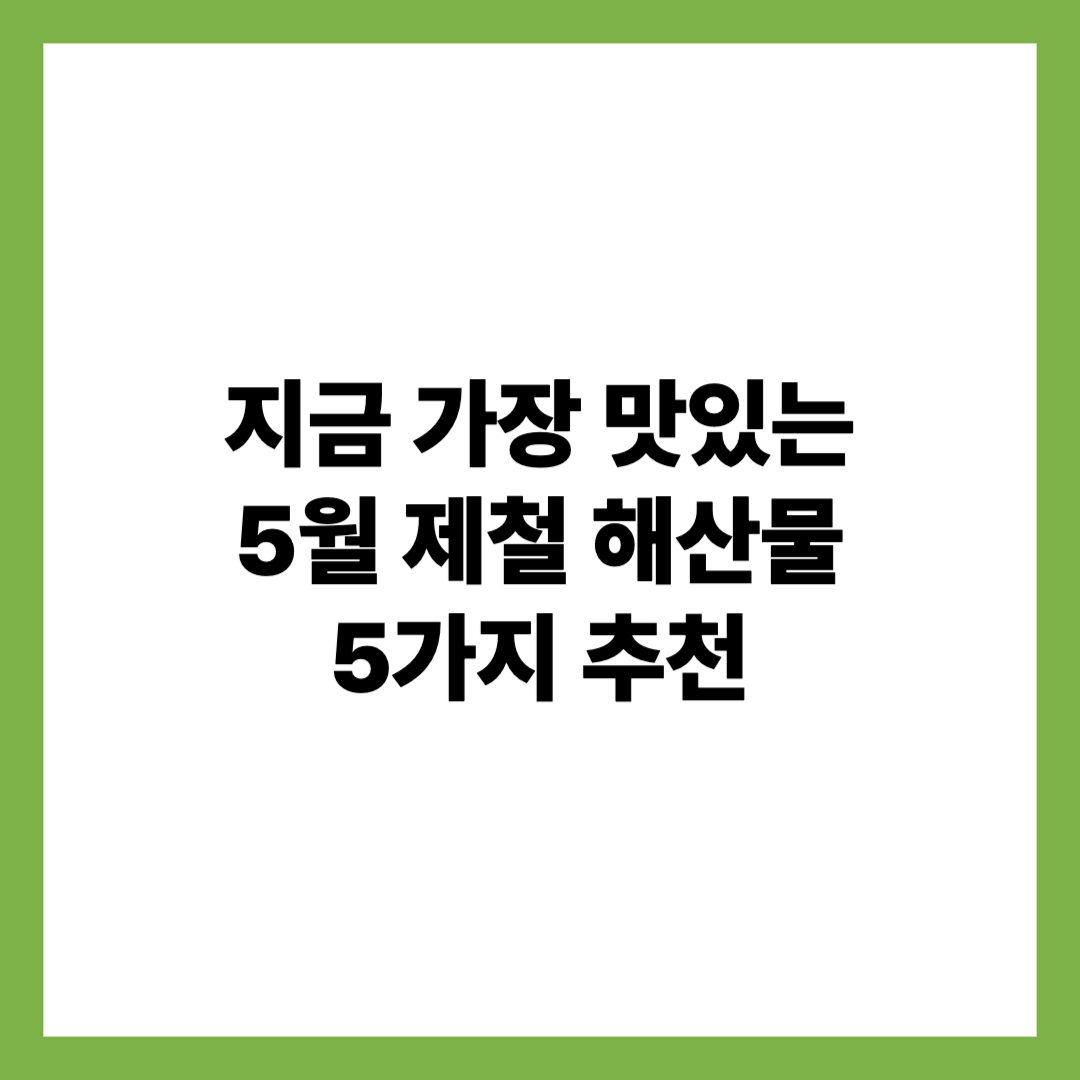 오늘은 5월에 가장 신선하고 맛있게 즐길 수 있는 제철 해산물 5가지를 소개해드릴게요. 병어, 밴댕이, 멍게, 장어, 갑오징어 등 이름만 들어도 군침 도는 바다의 진미들입니다. 5월은 바다의 맛이 가장 풍성하게 느껴지는 시기입니다. 날씨가 따뜻해지고 바다 환경이 안정되면서,